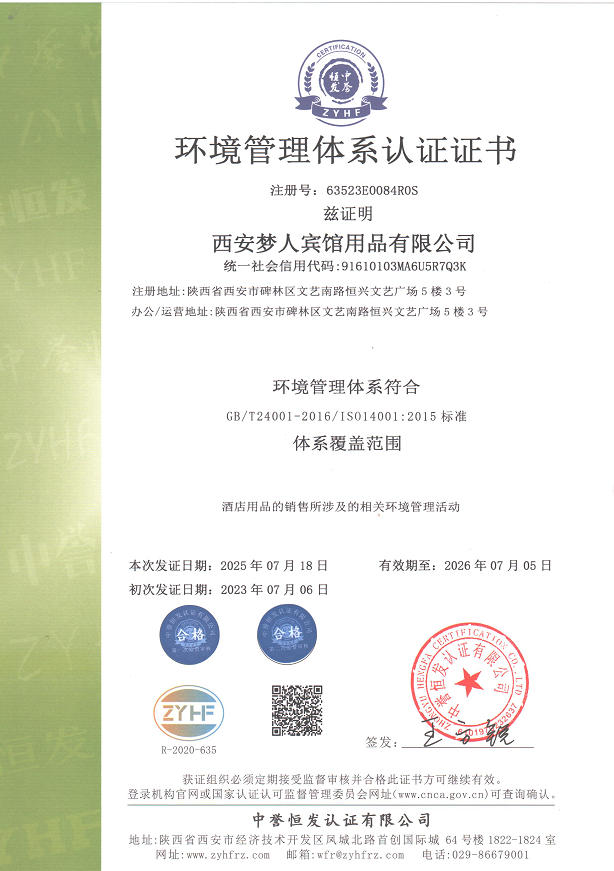 梦人宾馆用品有限公司是一家服务于星 级酒店的专业酒店用品服务商,“梦人”商标注册于1999年,历经20多年的发展,服务众多的星 级酒店,经验丰富,服务及时,通过了ISO9001质量管理体系认 证和ISO14001环境管理体系认 证,曾荣获“陕西省**商标”,“ 陕西省质量优 秀品牌企业”“陕西省重质量守信誉单位”等多项荣誉,公司本着“以信为本,以诚待人”的发展理念,着力打造优良的酒店用品服务商。
