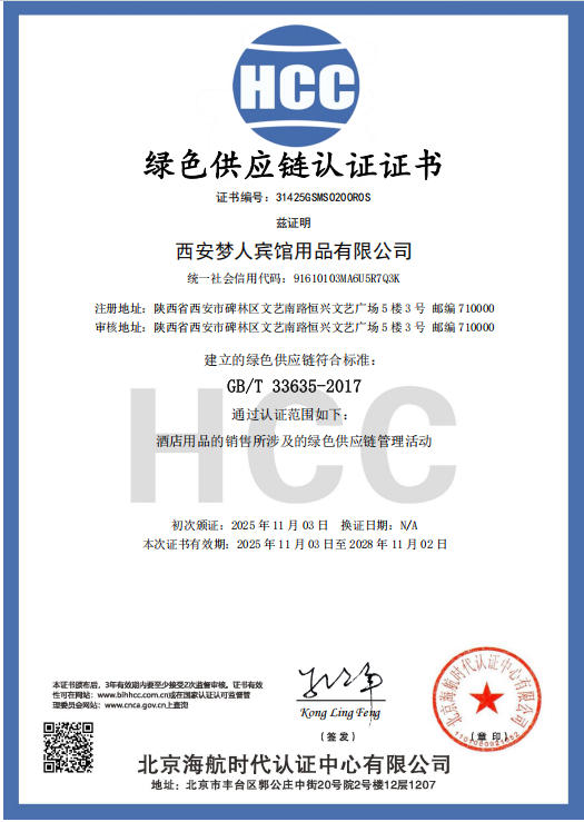梦人宾馆用品有限公司是一家服务于星 级酒店的专业酒店用品服务商,“梦人”商标注册于1999年,历经20多年的发展,服务众多的星 级酒店,经验丰富,服务及时,通过了ISO9001质量管理体系认 证和ISO14001环境管理体系认 证,曾荣获“陕西省**商标”,“ 陕西省质量优 秀品牌企业”“陕西省重质量守信誉单位”等多项荣誉,公司本着“以信为本,以诚待人”的发展理念,着力打造优良的酒店用品服务商。